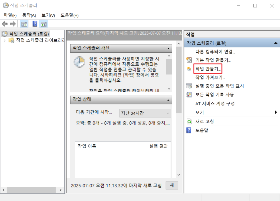 Windows 작업 스케줄러를 이용해 정해진 시간에 자동으로 실행되도록 설정했습니다.