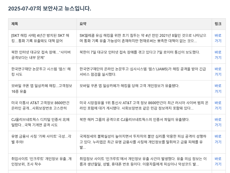 <h2>{today}의 보안사고 뉴스입니다.</h2>