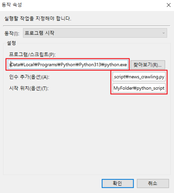 - 인수 추가 : news_crawling.py 파일의 경로 입력